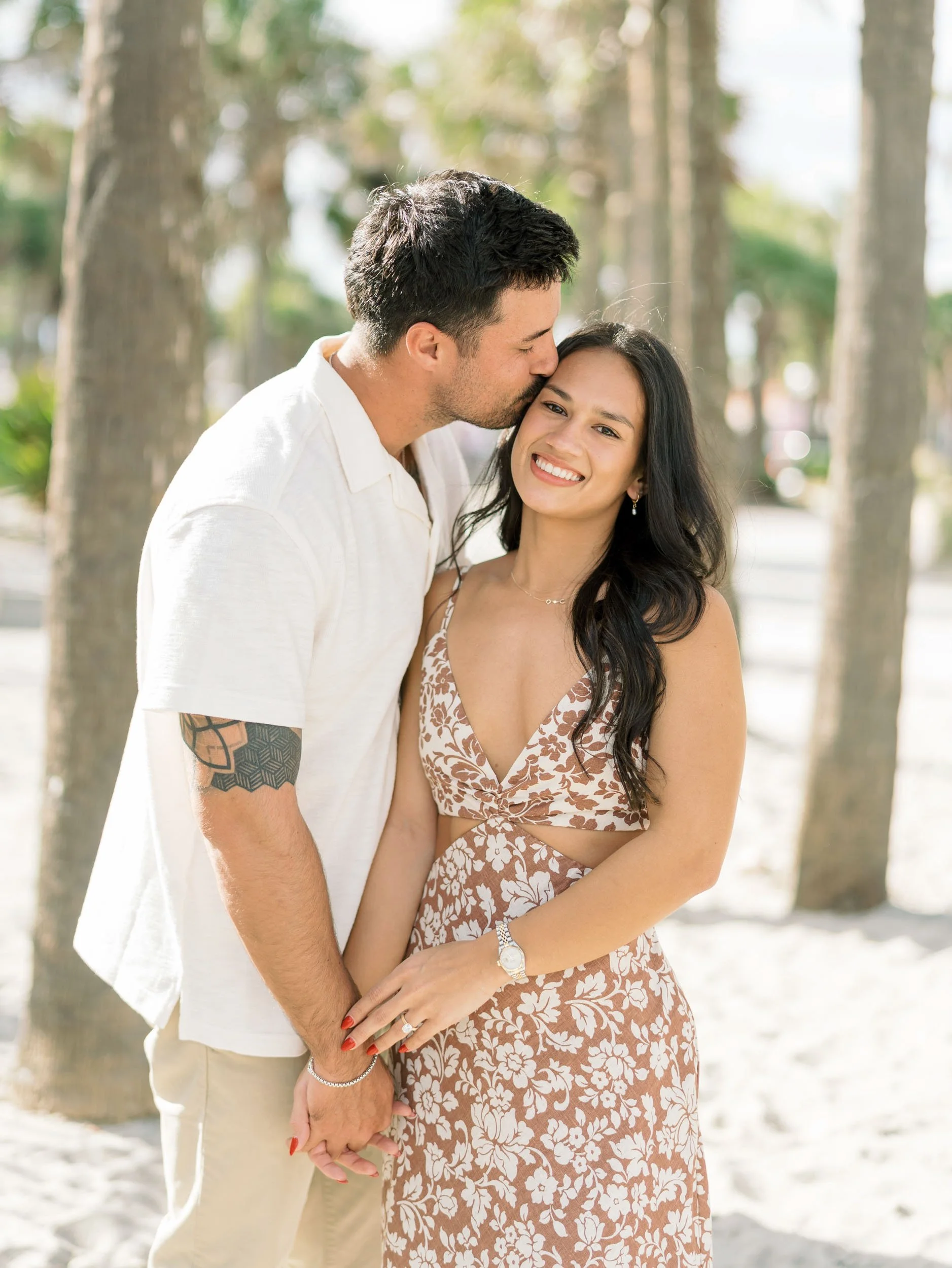 As a proposal photographer, I always scout out the location ahead of time, especially with new ones that I haven’t been to. Thankfully, I was very familiar with this spot, and had photographed a proposal there at this same spot last year. On this particular day, it happened to be quite warm for January. With 80 degree temperatures, the beach was flooded with bright light and lots of people.